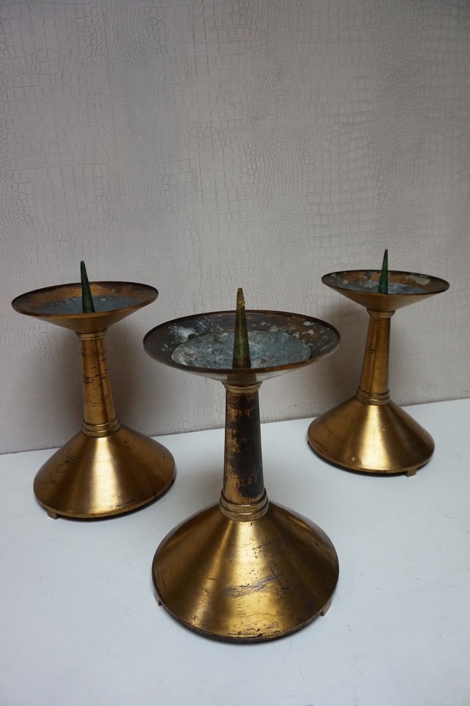 Large Art Deco vintage Church Altar Candlesticks Candle Holders in Brass, 1930s, Set of 3