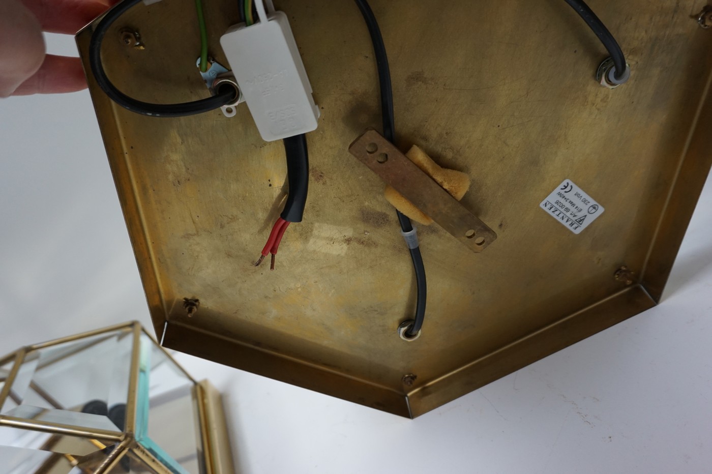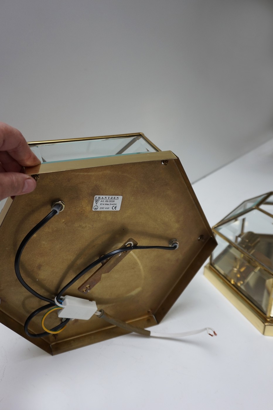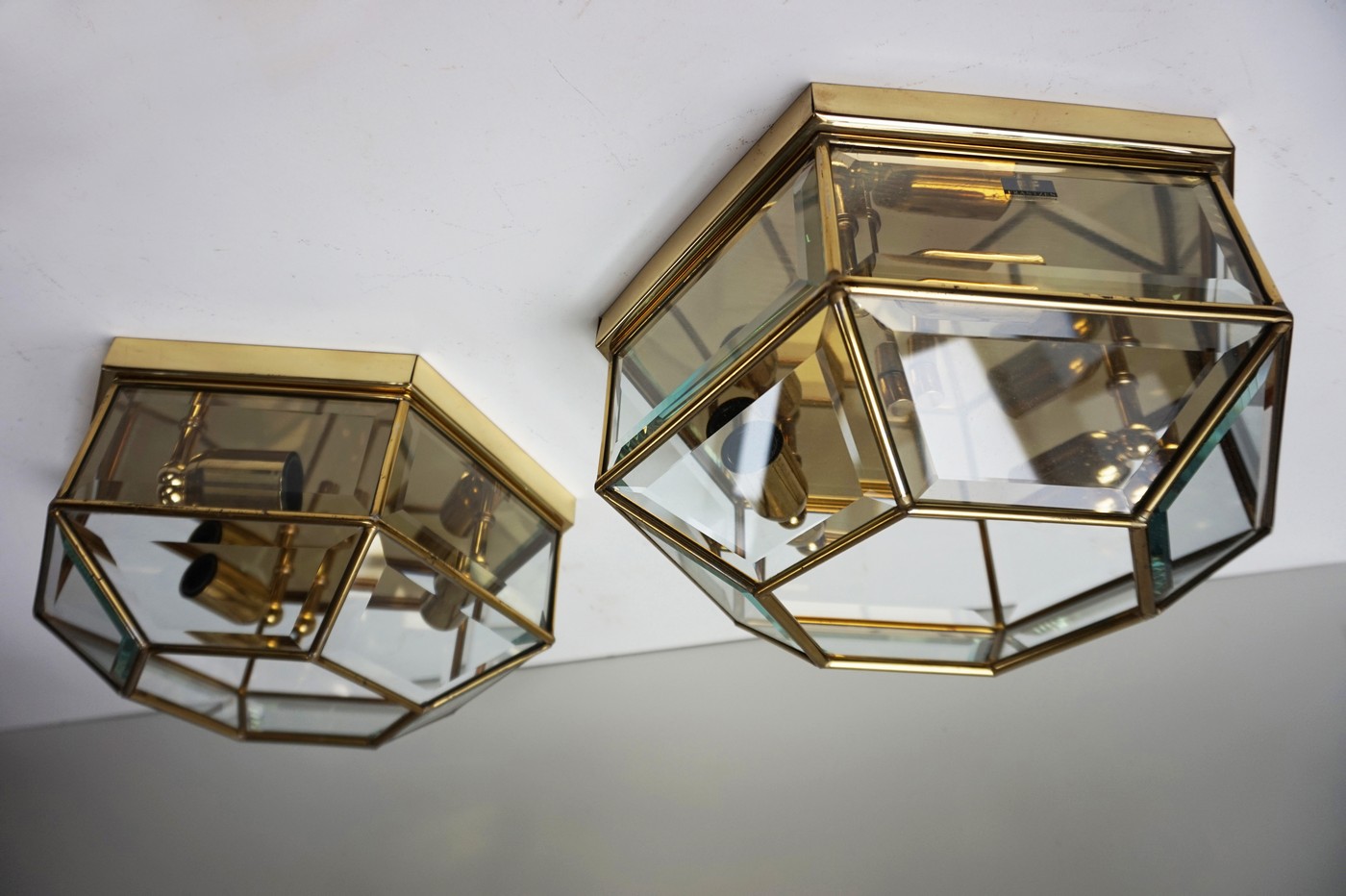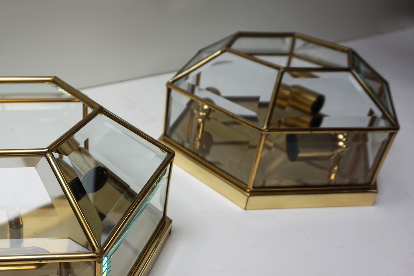 Hollywood Regency Hexagonal brass and faceted glass wall/ cieling lamps, 1970s, set of 2