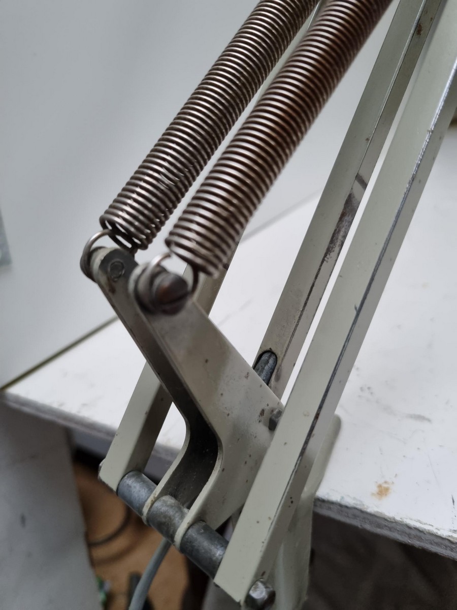 Het verstelbare schaar-armsysteem met zijn parallelle vierkante profielen van de boven- en onderarmen, gecombineerd met speciale scharnieren en spiraalvormige spanveren, creëert een constante spankracht die de horizontale uitlijning en de gewenste positie van de lamp kap te allen tijde garandeert.