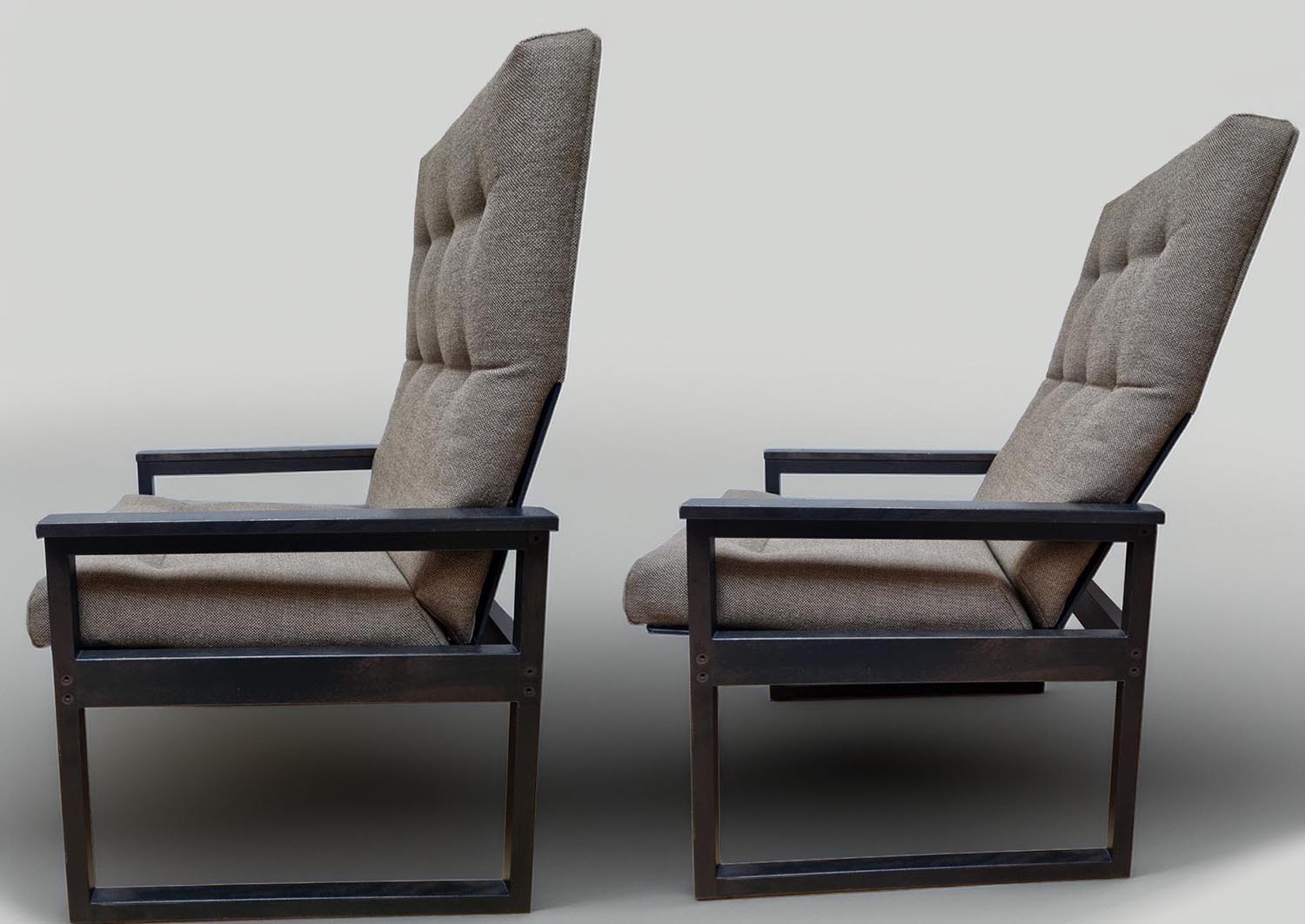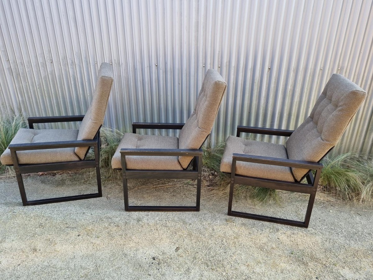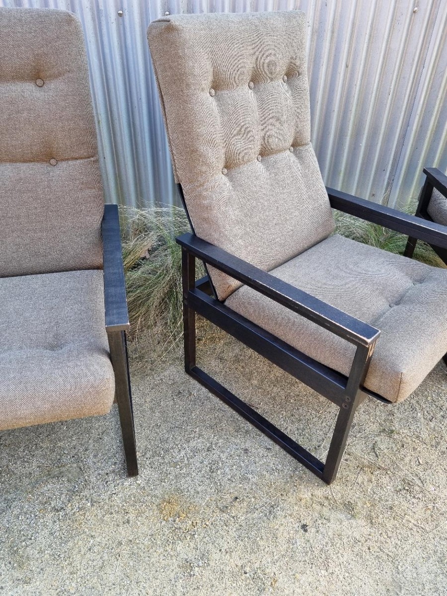Deze lounge chairs/ fauteuils/ armstoelen uit de jaren 70 hebben een prachtig minimalistisch geometrische design met mooie strakke lijnen en zijn uitzonderlijk licht in gewicht.