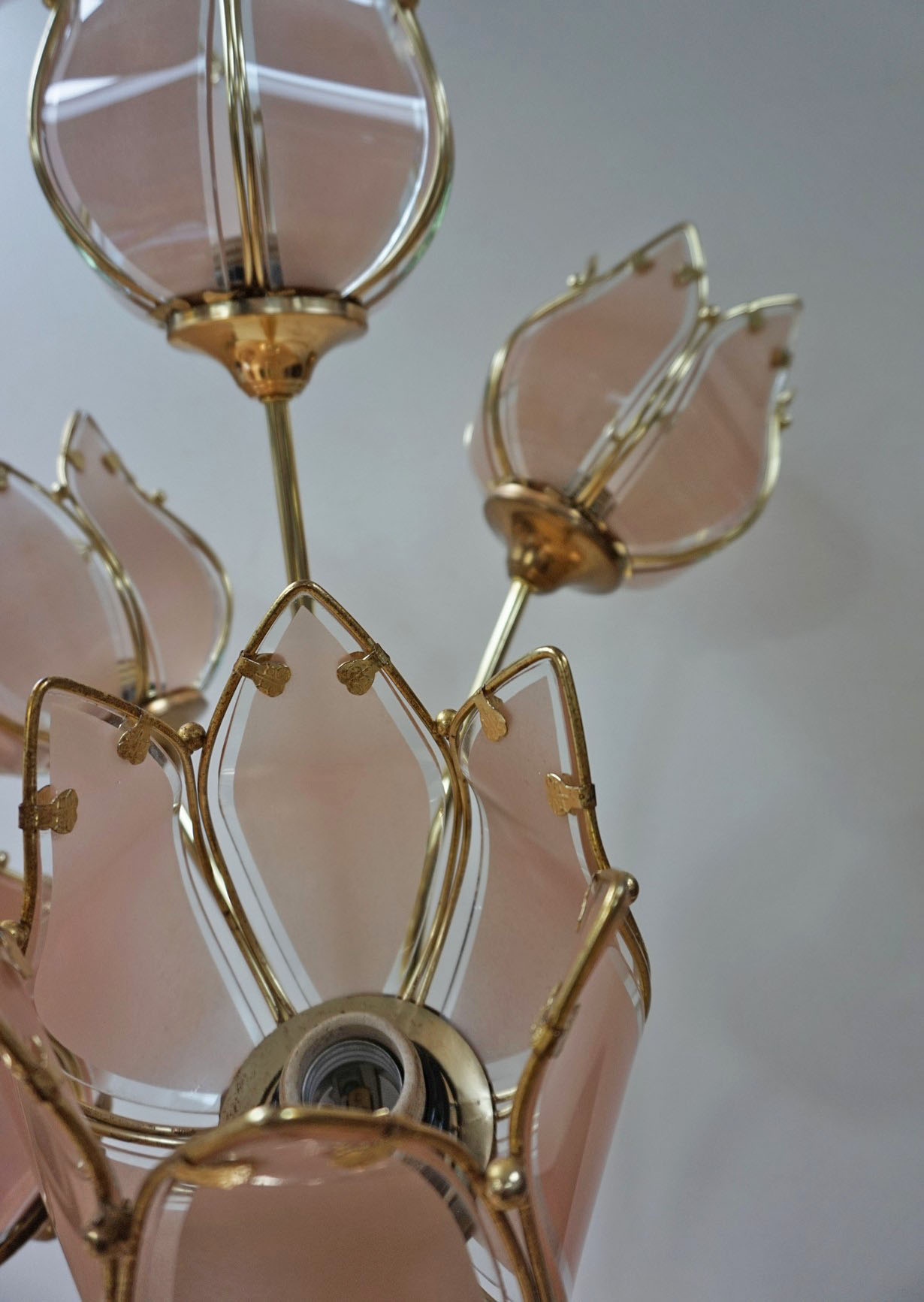 Het is mogelijk om de lamp in 3 verschillende standen te zetten : 2,3 of 5 lampen aan. De lamp geeft prachtig diffuus warm licht door het rose getint glas