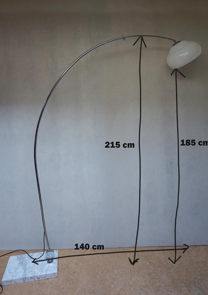 Retro vintage design booglamp/ arclamp met marmeren voet uit de jaren 70-80 van het Italiaanse merk Stilux