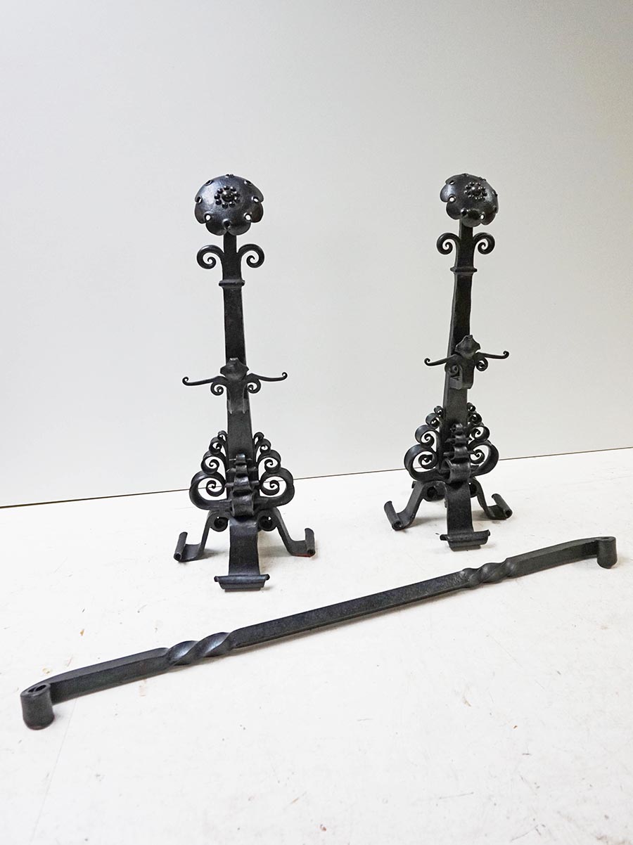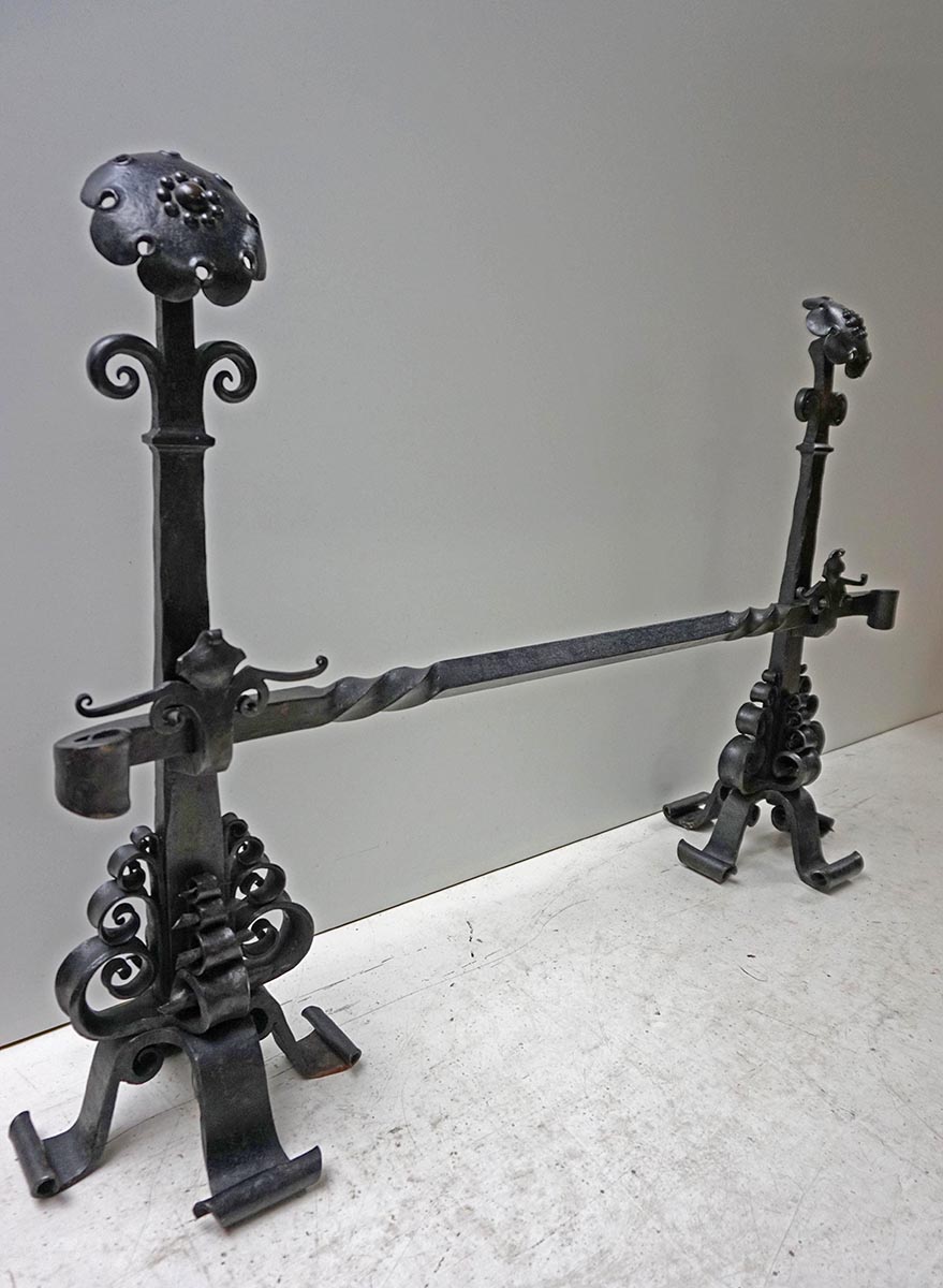 Amsterdamse School smeedijzeren vuurbokken haardijzers