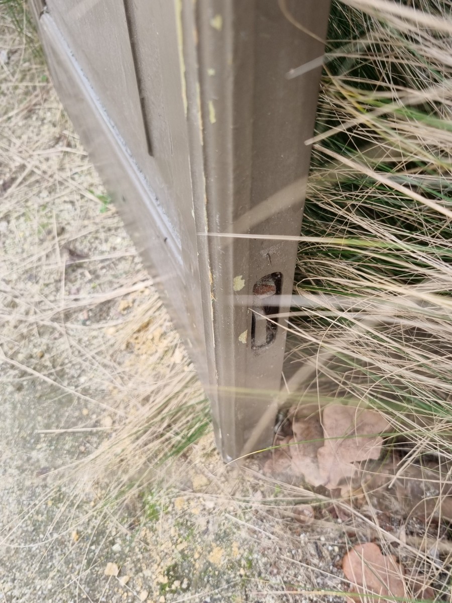 De deuren zijn geverfd en verweerd en een gedeelte van 1 deur is al afgekrabd.