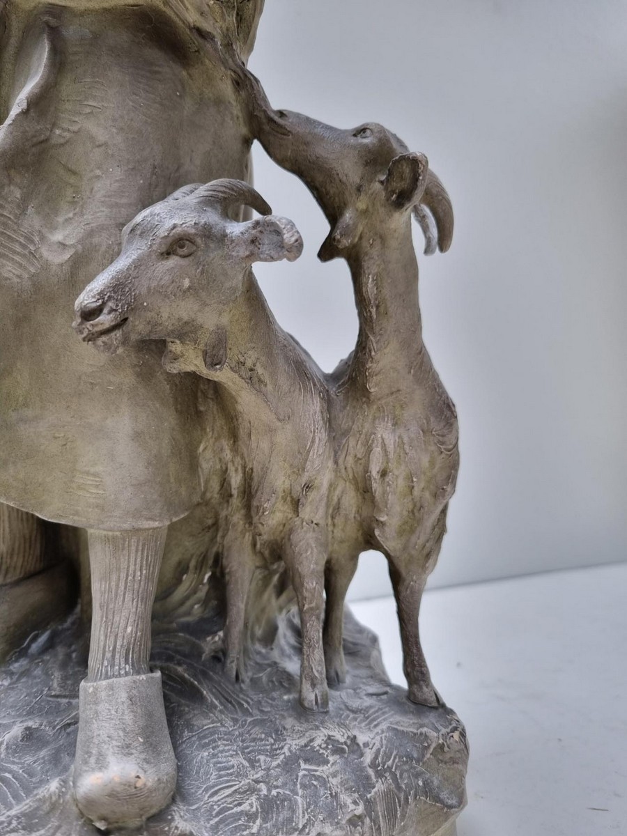 Decoratief terracotta beeld 'Jongedame met twee geiten/ geitenhoedster' door Richard Aurili (Italië  1864 - 1943)