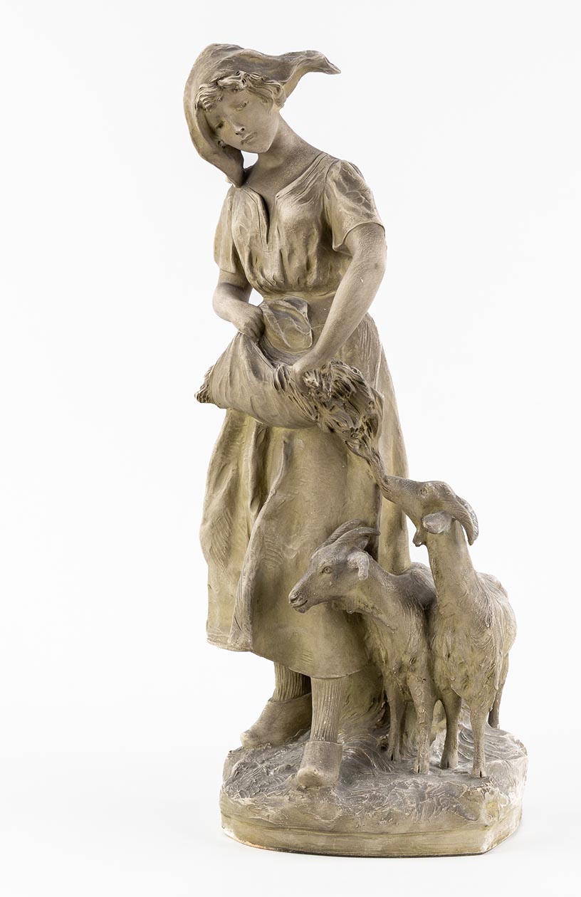 Richard Aurili terracotta beeld 'Jongedame met twee geiten'