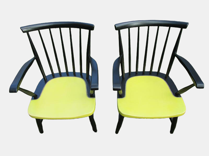 Set van 2 zwarte spijlen fauteuils, armstoelen uit jaren 50-60