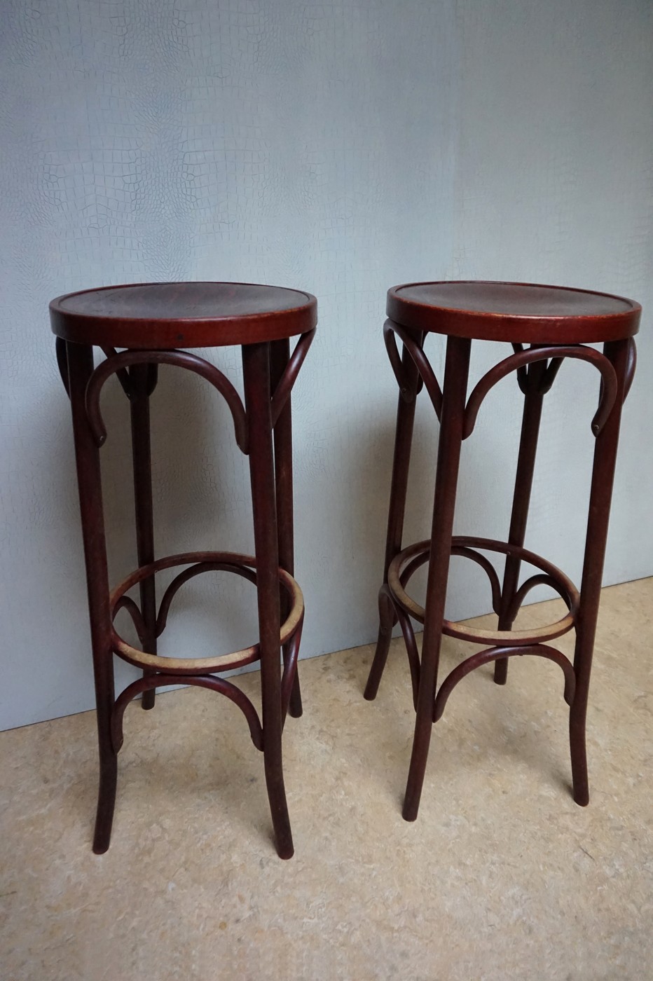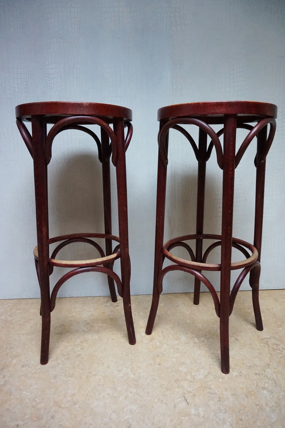 Set van 2 houten barkrukken thonet stijl, mahonie gebeitst, jaren 70