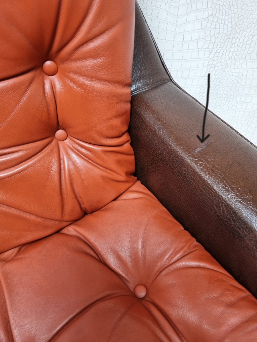 De fauteuil is nog in een hele mooi vintage staat met alleen een klein plekje op de armleuning ( zie foto) Verder in een perfecte staat met normale gebruikssporen.